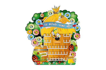 Panoul este decorat cu stup, albinuțe, butoaie cu miere și flori viu colorate. Fiecare copil își poate așeza eticheta într-un spațiu dedicat, învățând astfel să fie responsabil. Ideal pentru grupa mică sau medie, contribuie la un început de zi organizat și plăcut.