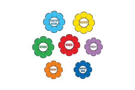 Стенд «Цветы — изучаем цвета» представляет собой набор цветных цветков с названиями основных цветов на румынском языке. Он предназначен для оформления зоны творчества в детском саду, начальной школе или развивающем центре. Стенд способствует запоминанию названий цветов, развитию зрительного восприятия и расширению словарного запаса. Простая форма цветка и яркая палитра делают материал доступным и привлекательным для малышей. Можно использовать как наглядное пособие для игр, уроков и выставок.