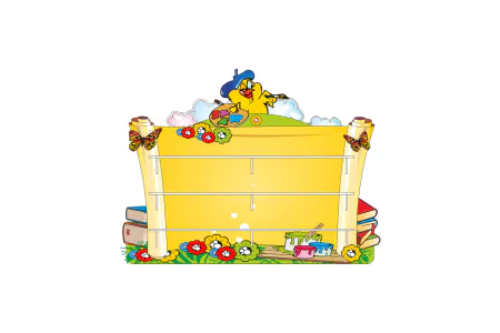 Этот яркий и позитивный стенд оформлен в виде свитка с тёплым жёлтым фоном и забавным цыплёнком-художником, сидящим на облаке с кисточкой в лапке. Элементы декора включают бабочек, цветы, книги и баночки с краской, создавая атмосферу творчества и вдохновения. На трёх горизонтальных полках удобно размещать аппликации, поделки детей. Стенд подойдёт для оформления творческого уголка, конкурса, выставки работ и создания уютной атмосферы в классе.