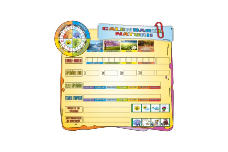 Универсальный стенд «Календарь природы» разработан для организации утреннего круга и развития наблюдательности у детей. Панель содержит наглядные блоки с обозначением месяцев, времён года, дней недели, температурных и погодных условий. Яркий дизайн с изображениями природы, цветовым кодированием и кругом погоды делает стенд увлекательным инструментом для изучения окружающего мира. Подходит для размещения в группе, холле или методическом уголке. Изготовлен из прочного пластика с ламинированным покрытием, защищающим от износа, влаги и солнечного света.