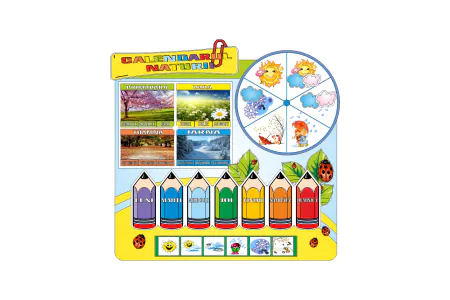 Развивающий стенд «Календарь природы» создан для оформления пространства в детском саду и начальной школе. Он позволяет детям отслеживать изменения в погоде, учить времена года, месяцы и дни недели. Цветные карандаши, символизирующие дни недели, и круг погоды с иллюстрациями создают визуально понятную систему, которая помогает формировать навыки наблюдения, логического мышления и расширяет словарный запас. Благодаря прочным материалам и ламинированной поверхности стенд устойчив к износу и легко моется.